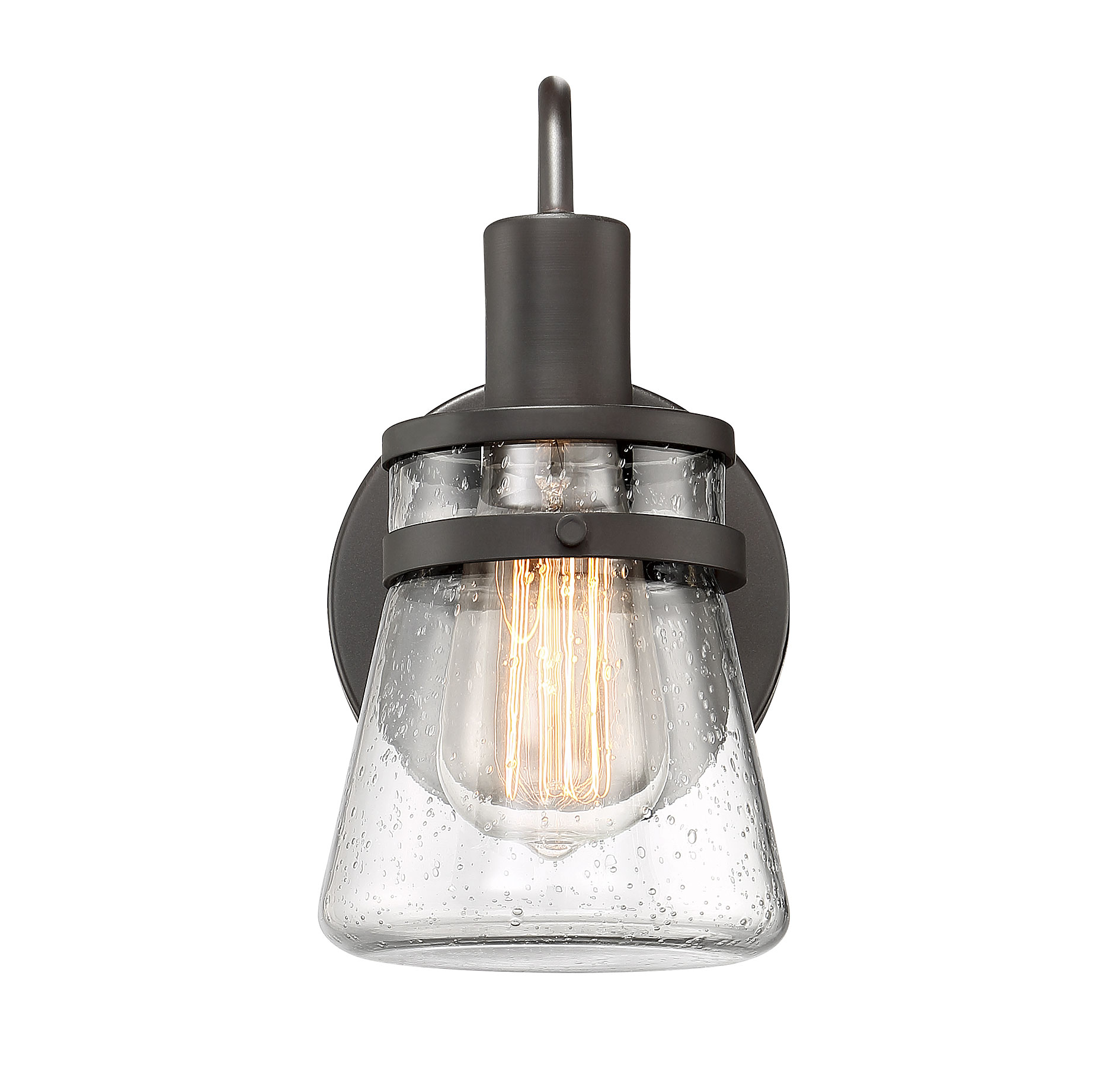 Bring rustic lighting style outside with the Savoy House Portsmouth 1-light outdoor sconce! Clear seeded glass shades protects the light source and is paired with an English bronze finish. This sconce can be used in covered outdoor spaces.